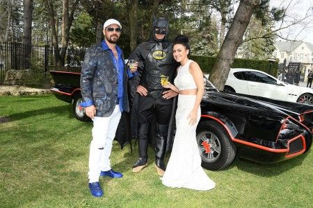 ジェレミーと婚約者のチェルシーは2年の交際を経て今年2月に婚約。展示されていたヴィンテージのバット・モービルの前でバットマンと記念撮影。
