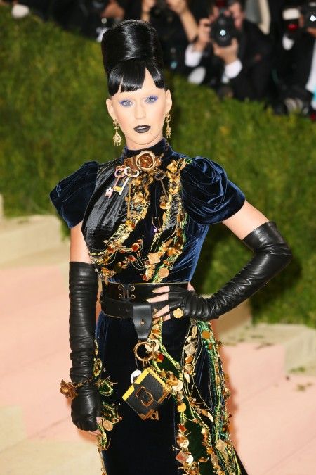 年に一度のファッションイベントであるMETガラに、交際中のシンガー、ケイティ・ペリーと共にたまごっちを着けて現れた、俳優のオーランド・ブルーム。