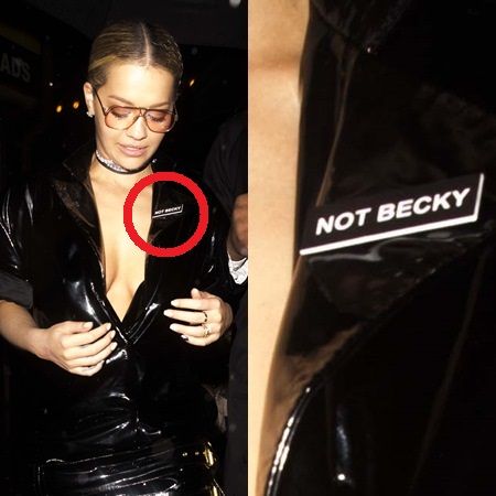 そんななか、5月2日のMETガラに出席したリタとケイティが、アフターパーティに「NOT BECKY(ベッキーじゃない)」というピンを着けて登場! 旬なネタをファッションに取り入れ、ネット上では「このピン欲しい」などと話題になっている。