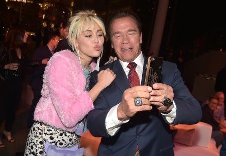 シンガーのマイリー・サイラスが、俳優のアーノルド・シュワルツェネッガーと自撮りする姿をキャッチ!