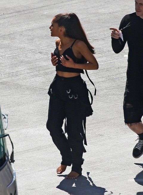 バックステージでズリ落ちそうになる衣装を押さえる姿が目撃された、シンガーのアリアナ・グランデ。ステージ上では「デンジャラス・ウーマン」「イントゥ・ユー」の2曲をパフォーマンス! バックダンサーには、彼氏であるリッキー・アルヴェスの姿も♡