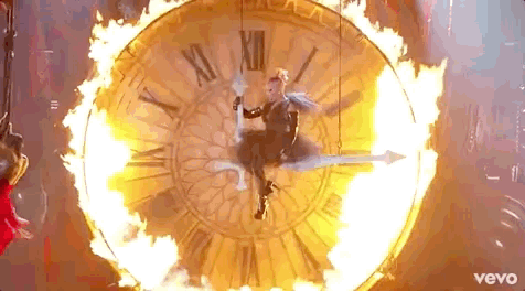 アクロバティックなパフォーマンスで知られるピンクが、時計の針の形をした空中ブランコに乗って新曲「ジャスト・ライク・ファイア」をパフォーマンス!