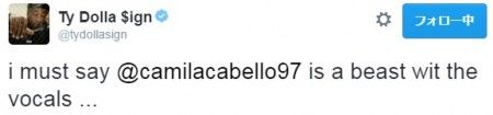 発端は、先週タイ・ダラー・サインが「カミラ・カベロの歌声は最高だよ」とツイートしたこと。