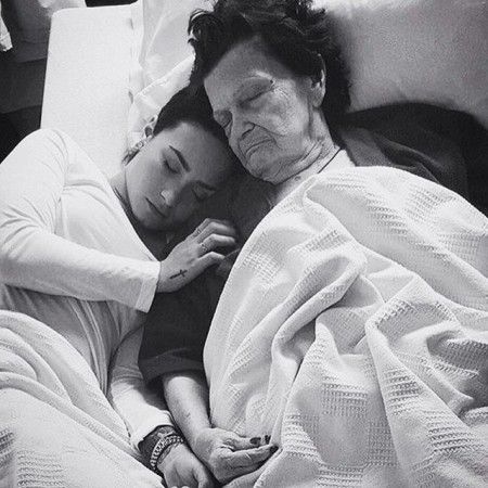 曾祖母に寄り添い目を閉じるデミの写真とともに投稿された長文のメッセージには、曾祖母の素晴らしさや2人の仲の良さが綴られている。