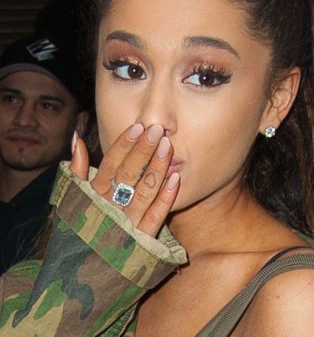 アリアナの初タトゥーは、18歳だった2012年。デビューアルバムのレコーディング中に、収録曲「タトゥード・ハート(Tattooed Heart)」にちなんだハートを足に入れた。これが気に入って、2015年5月には、新たに手の指にもハートをゲット。
