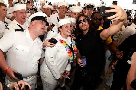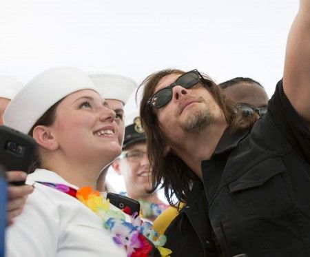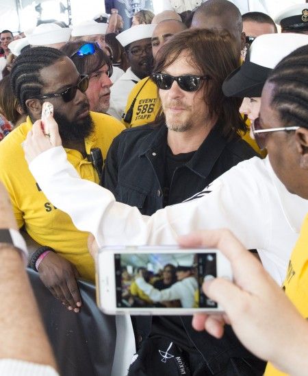 いつもなら一緒に写真を撮りたがられる側の海軍や海兵隊だけれど、29日に行われたフリート・ウィークのイベントでは、立場が逆転。というのも、米ケーブルTV史上最高視聴率を記録している大ヒットドラマシリーズ『ウォーキング・デッド』のダリル役で人気のノーマン・リーダスが登場したから!