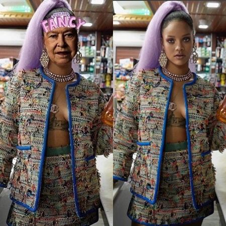 リアーナがインスタグラムに投稿した4枚の写真は、リアーナ自身の写真にエリザベス女王の顔を合成したもの。