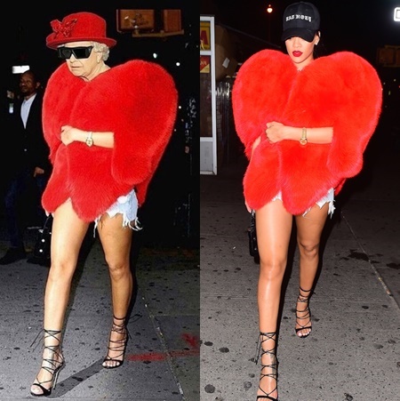 リアーナによるエリザベス女王のコラ画像集。コメント欄では、賛否両論な意見が飛び交っている。