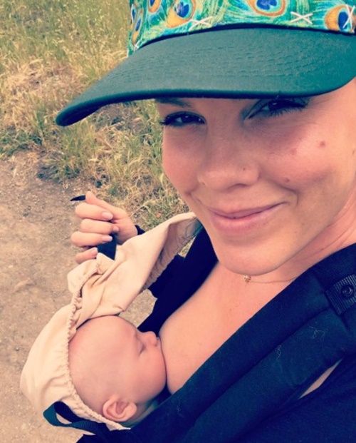 ピンクはハイキング中に、息子に授乳する様子をSNSで公開。