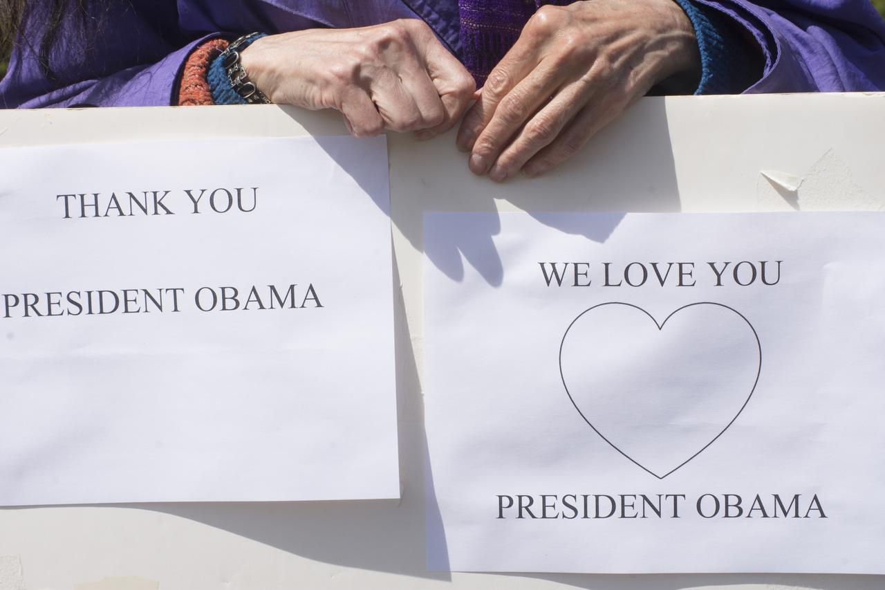 沿道には「ありがとうオバマ大統領」「オバマ大統領大好き」というプラカードを持ったファンや多くの報道陣が集まり、オバマ元大統領の復帰を歓迎。