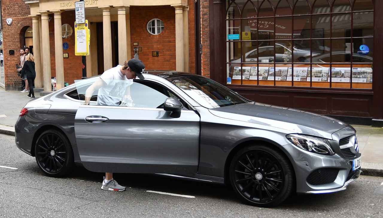 上の写真が撮られた約1ヵ月前には、内装をカスタムしたメルセデス・ベンツのハンドルを握っていた。