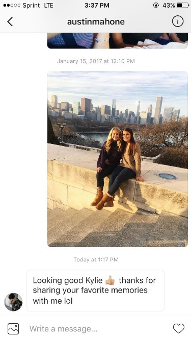 アメリカに住むカイリーという女性は、インスタグラムのメール機能であるダイレクト・メッセージ(DM)を使ってオースティンに写真を送る行為を開始。
