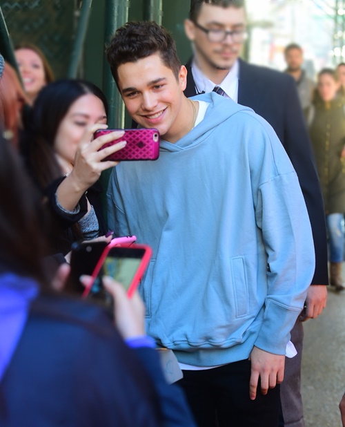 Austin Mahone Takes Selfies with Fans as he's swarmed outside NYC radio station