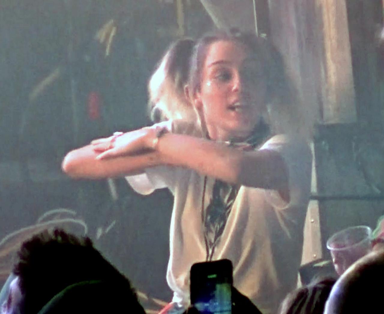 マイリー・サイラスがバンドのライブに登場、友人と独特なダンスで踊りまくる