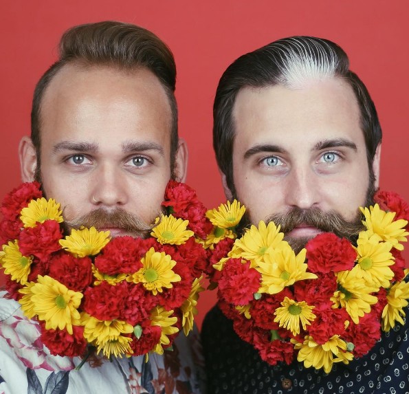 ブライアンとジョナサンは2014年のある日、たまたま伸びたひげにくっついた花びらをきっかけに、ひげにデコレーションを施すようになった。