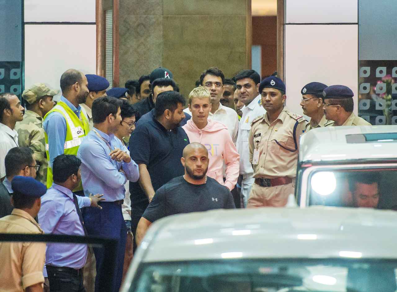 そんなジャスティンは当日の午前1時30分ごろにムンバイの空港に自家用ジェットで到着。空港からは大勢の警備員を引き連れての大移動だった。