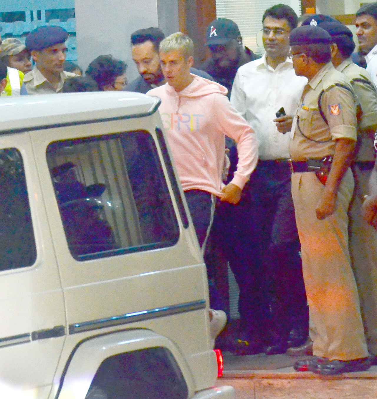ワールドツアーのためインドを訪れたジャスティン・ビーバー、大勢の警備に囲まれる移動は一苦労。