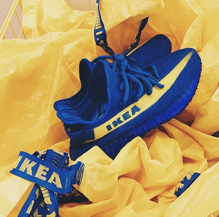 ラッパーのカニエ・ウェストが手がける大人気シューズのイージーブーストがイケア仕様に。イージーブースト独特のシューズデザインは残しつつ、イエロー×ブルーのイケアカラーで大変身。極め付きは、イエローラインに書かれた「IKEA」という文字。