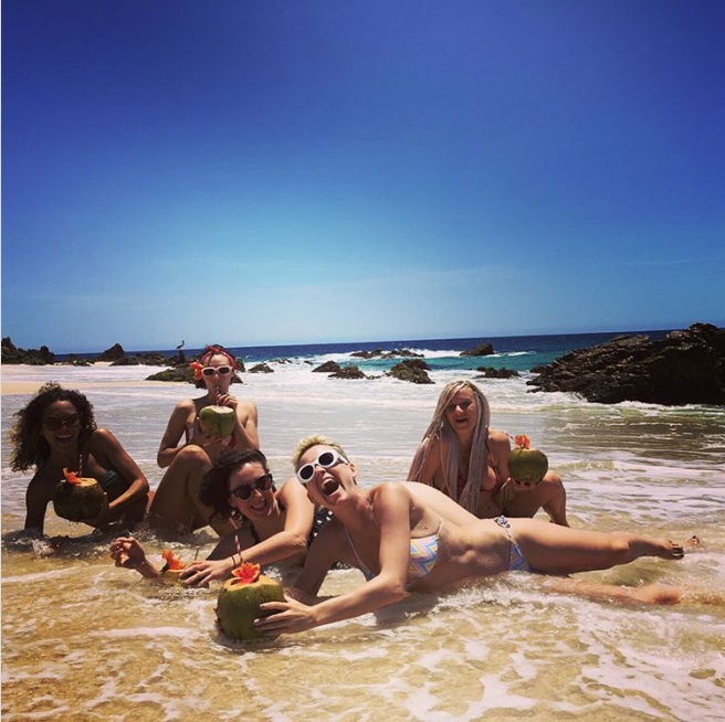 ケイティは、「まぬけな女神たち」というコメントとともに、ビーチでの様子を全部で8枚投稿。写真を順番に追っていくと、1枚目で空を眺めていたケイティの視線が、2枚目では何やら海の方に移動していることが分かる。