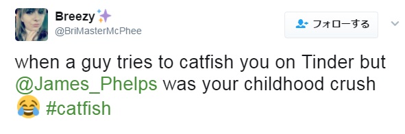 「男性がティンダーで(ジェームズに)なりすまそうとしたけど、ジェームズ・フェルプスが私の子供の頃の憧れの相手だった時」。