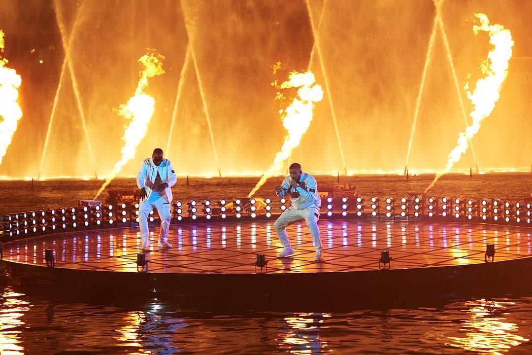 オープニングアクトを務めたのは、人気ラッパーのニッキー・ミナージュ。じつに9分間にわたるパフォーマンスを、スペシャルゲストのリル・ウェイン、ジェイソン・デルーロ、デヴィッド・ゲッタと共に行い、「ノー・フラウズ」「ライト・マイ・ボディ・アップ」「スワラ」をパフォーマンスした。