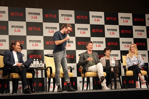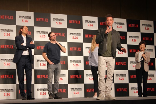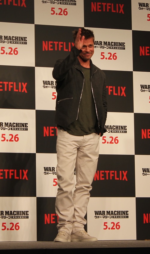 俳優のブラッド・ピットが、Netflixオリジナル映画『ウォー・マシーン:戦争は話術だ!』のプロモーションで来日し、記者会見を行った。