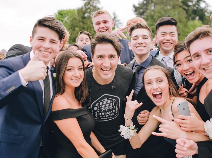 高校生たちはまさかの首相の登場に驚いたものの、トルドー首相に一緒に写真を撮ってくれるようお願い。突然のお願いにもかかわらず、トルドー首相は快く受けいれ、写真撮影に応じてくれたという。