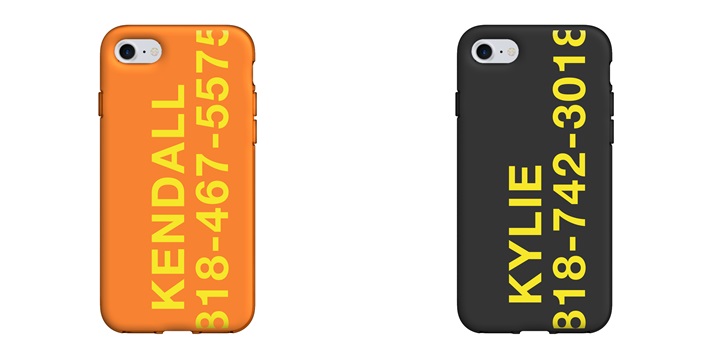 ケンダルはオレンジ、カイリーは黒のTシャツとスマホケース。