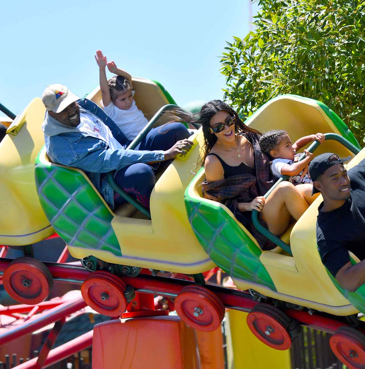 ただ、ノースちゃんだけは終始ビビりまくり。一行はキムとノースちゃん、カニエとペネロペちゃんが隣同士に座ってローラーコースターに搭乗。