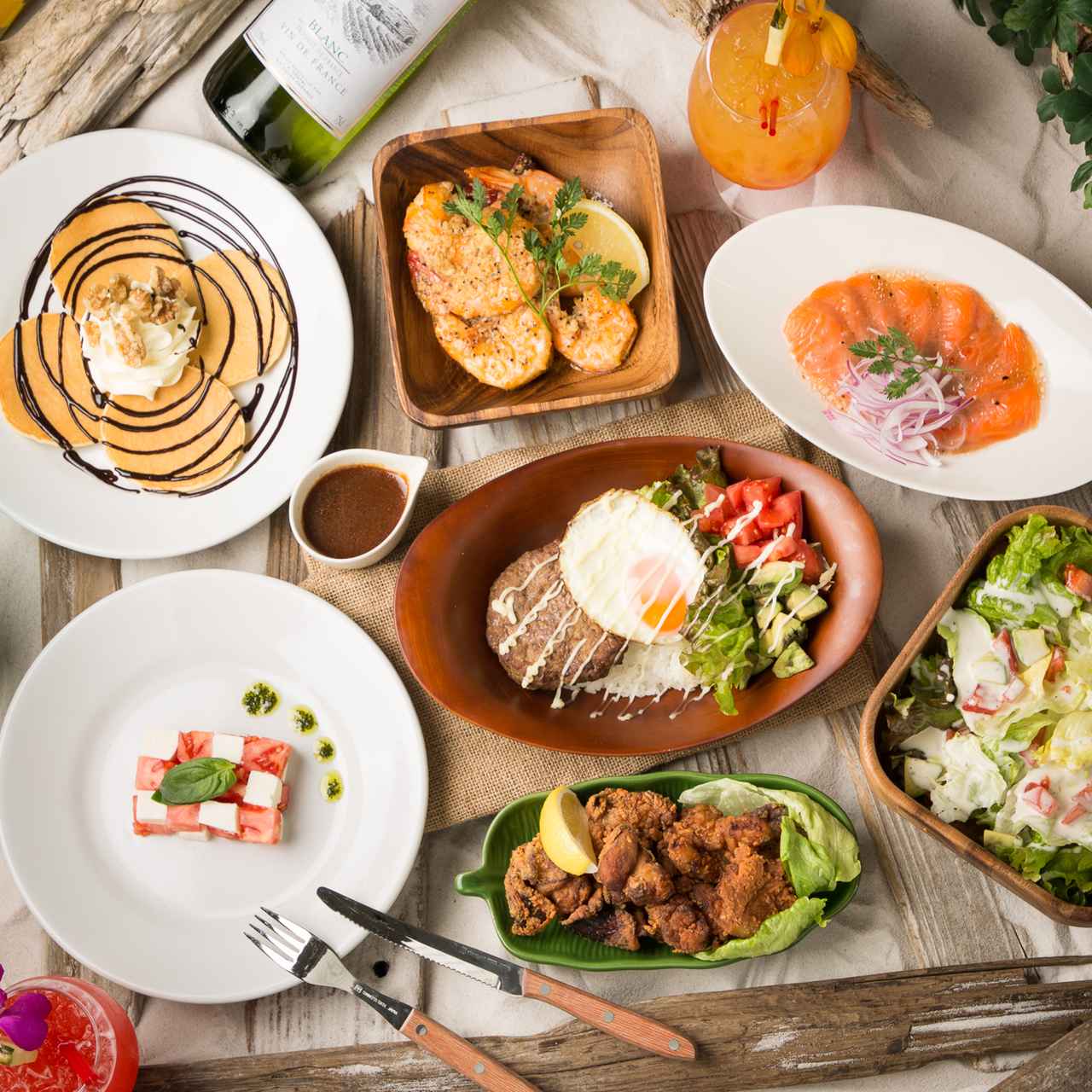 ロコモコ、ポキ、サイミンなどのハワイの定番メニューのほか、ガーリックシュリンプなどのハワイフードがスタイリッシュな店内で楽しめる。