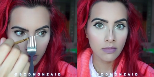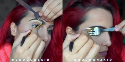 これまでにもデンタルフロスやヘアピンを使ってアイメイクをするビューティーブロガーがいたけれど、まさか眉毛やノーズシャドウにフォークを使うブロガーが登場するとは。