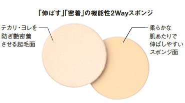 コンパクトに付属する専用スポンジは、両面が違う機能になっており、片面は「伸ばす」、もう一方は「密着させる」と使い分けができ、機能性はバツグン。簡単にプロの技術が再現でき、素肌が透けて見えるような透明感を演出。