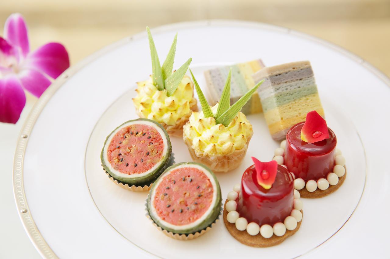 その他、トロピカルフルーツを使ったタルトや、ハイビスカスのムースなど見た目も楽しいスイーツが登場する。