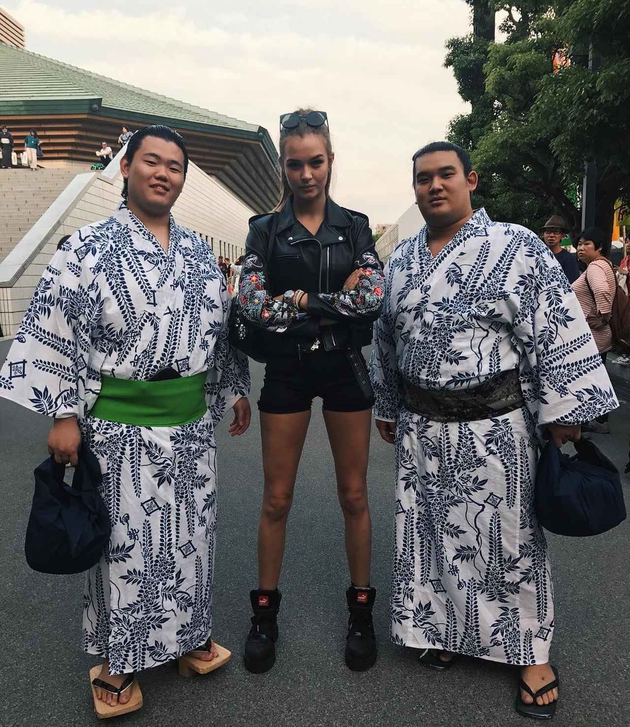 また両国国技館の外では、2人の力士を見つけ、一緒に写真撮影。「プロフェッショナルな力士たちをとても尊敬するわ。このスポーツに驚かされたの」と相撲女子の一面を見せた。