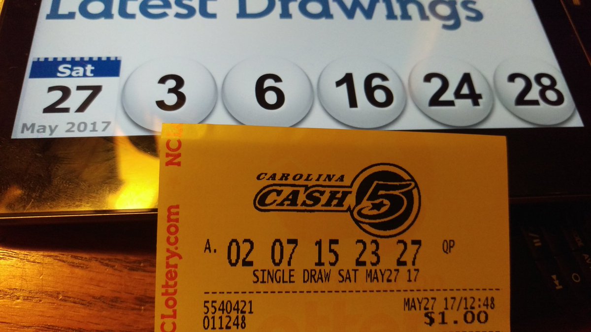 ノースカロライナ州で実施されている「カロライナ・キャッシュ・ファイブ(Carolina Cash 5)」。当選番号は毎日発表されており、5つの数字のうち何個一致したかで当選額が決まる。