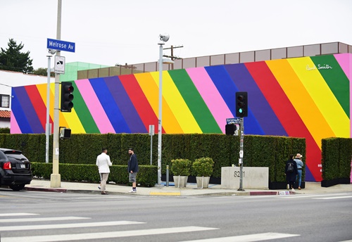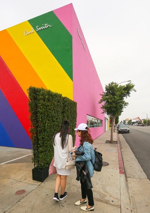 ロサンゼルスで最も有名な壁のひとつと言えば、メルローズ通りに位置するポール・スミスの店舗の壁。