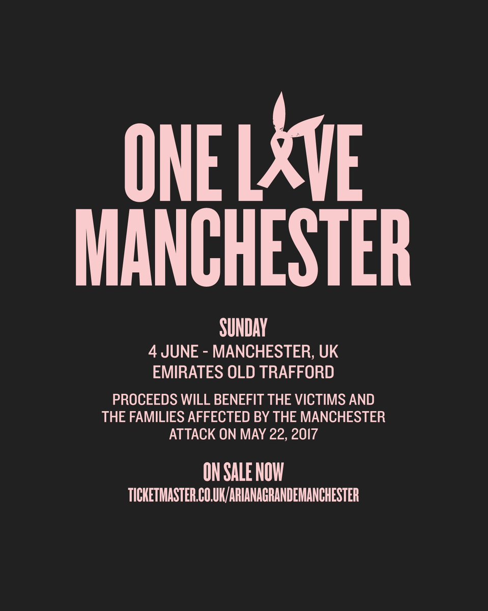 アリアナ・グランデは、先週の日曜日(5月22日)に起こった自身のマンチェスター公演での自爆テロ事件を受けて、チャリティー・コンサート「ワン・ラヴ・マンチェスター」を、今週の日曜日(6月4日)に開催することを発表。