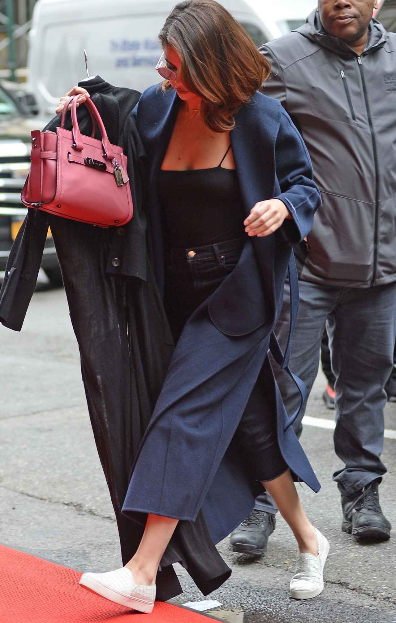 ニューヨークのストリートで、女優兼シンガーのセレーナ・ゴメスを発見。この日のセレーナは、キャミソール+デニムのシンプルなスタイルに、ピンクのトートバッグを差し色にした大人カジュアルコーデ。