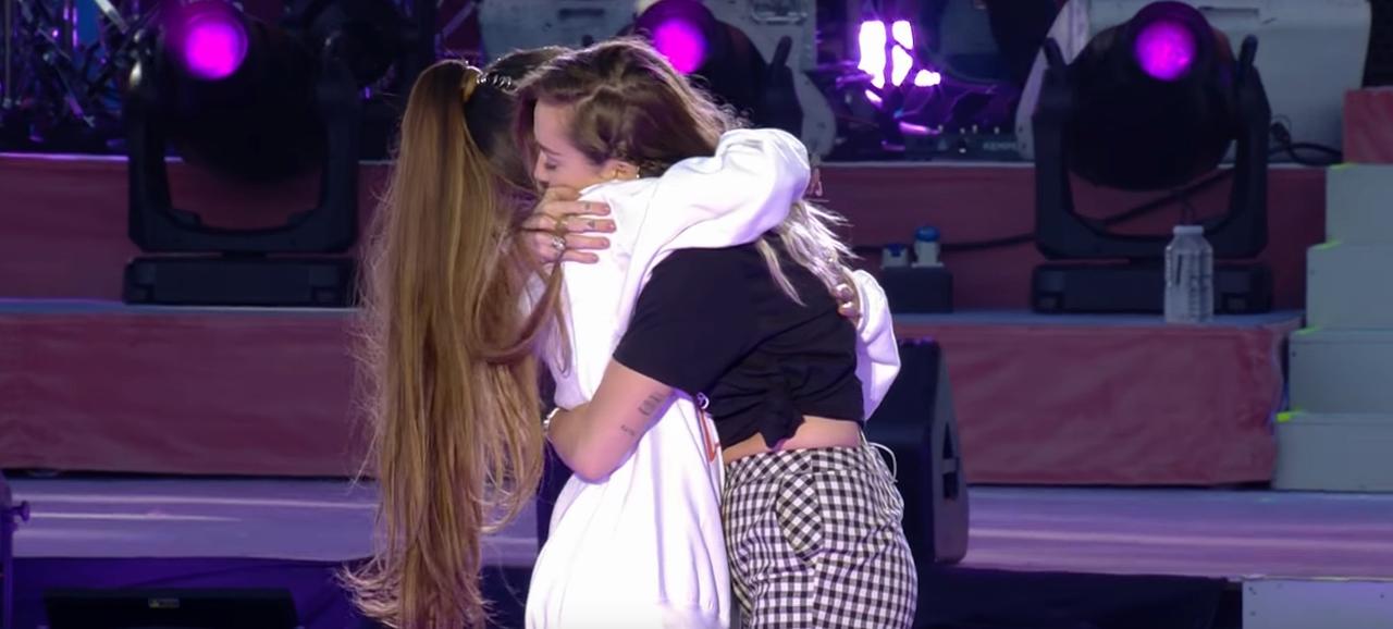 日本時間6月5日に行われたイギリス爆発テロ慈善公演で、マイリー・サイラスが主催者であるアリアナ・グランデとともにファン待望のコラボを行った。