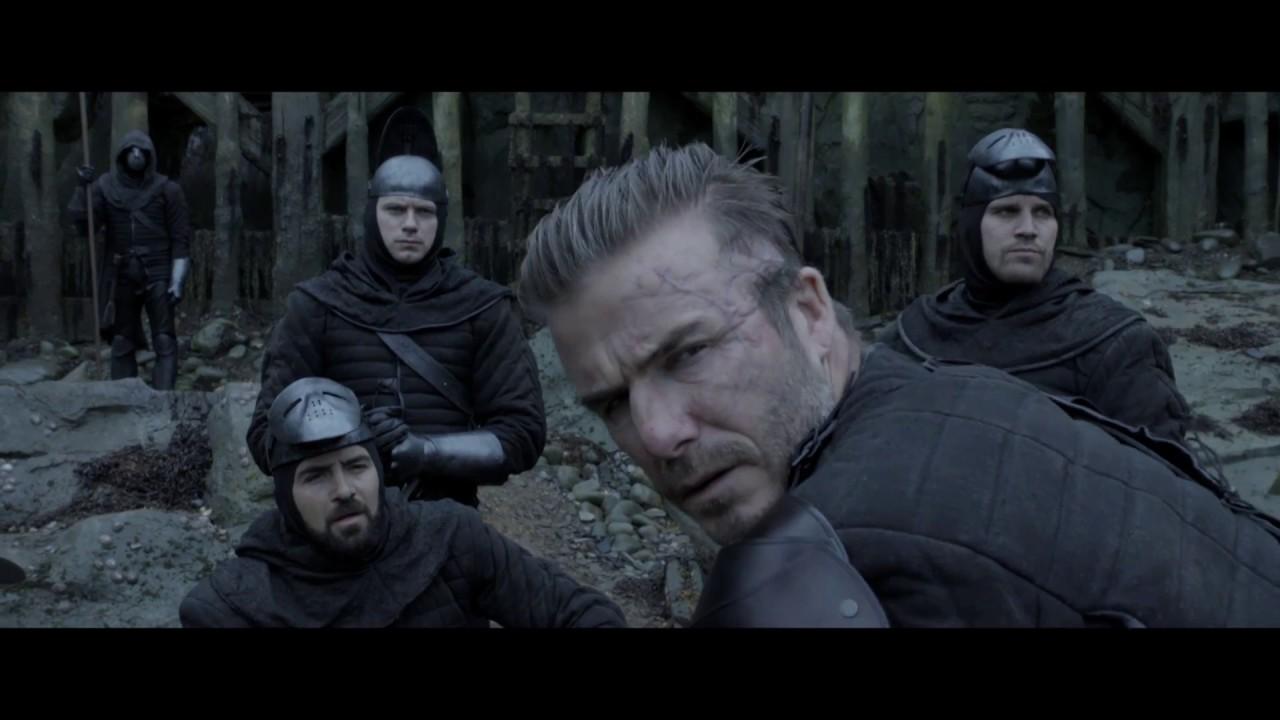 デヴィッドは、ジュード・ロウ演じる暴君ヴォーティガン率いる軍隊に所属する悪役を演じ、今までのイケメンのイメージを覆す険しい表情で睨み付けるベッカムの姿が印象的な収められている。