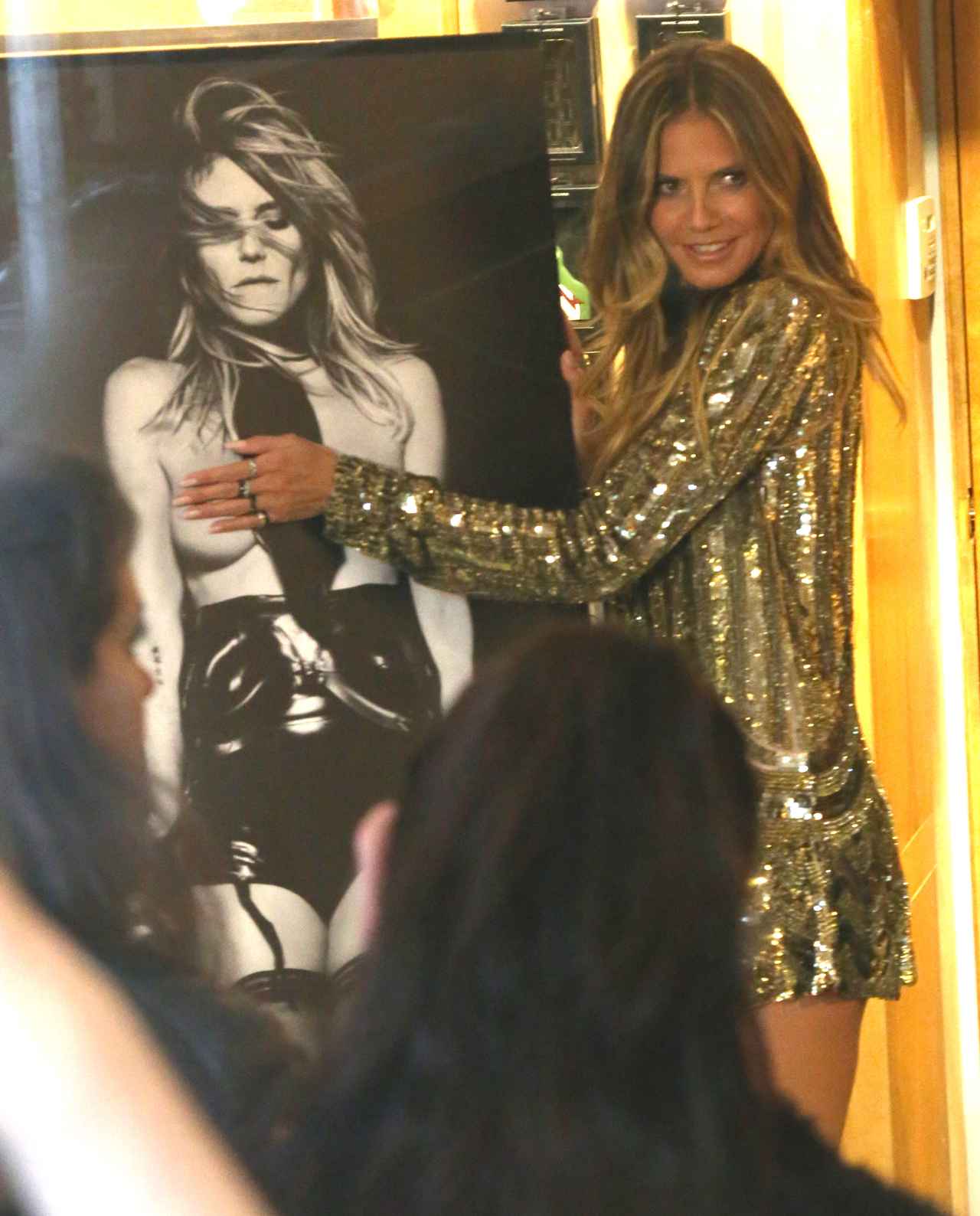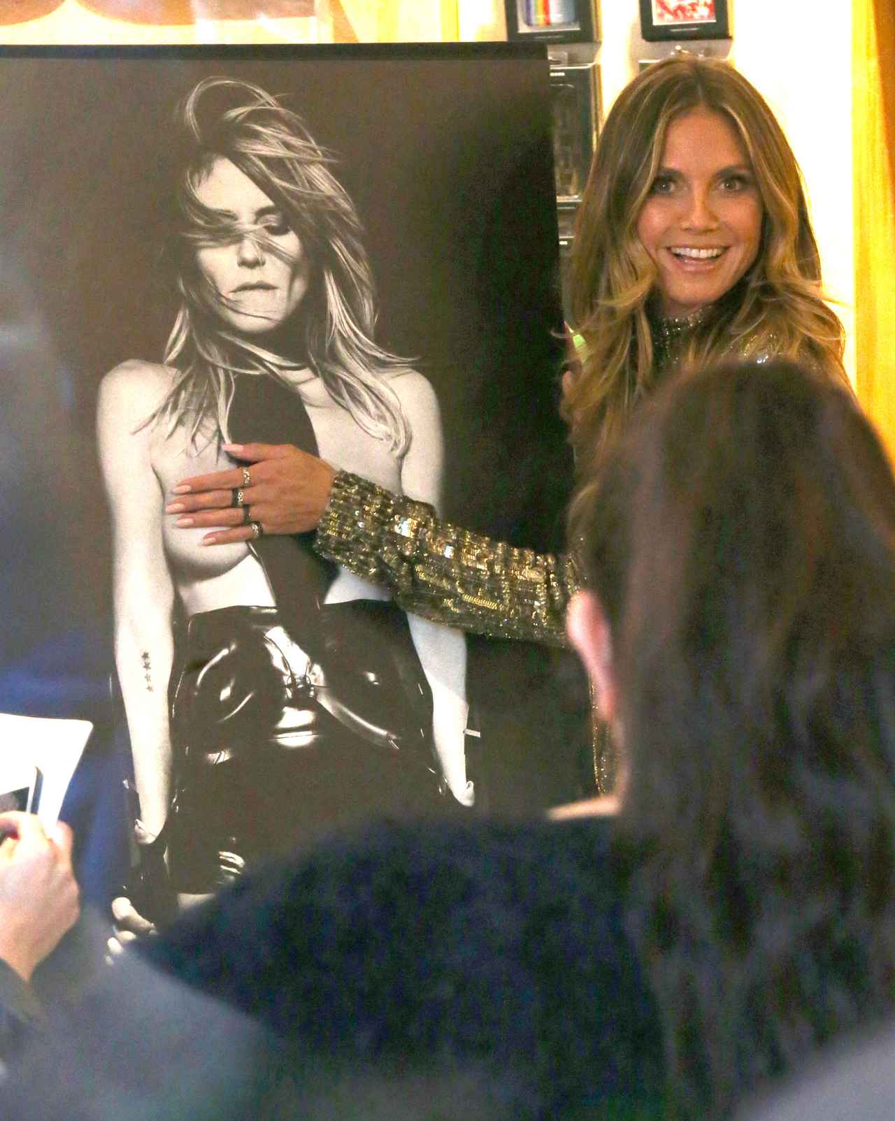 そのイベントには、写真集に収められたハイディのセクシーな写真の大型パネルが。ハイディは写真に写る自身の乳首を思わず隠してしまうシーンも。