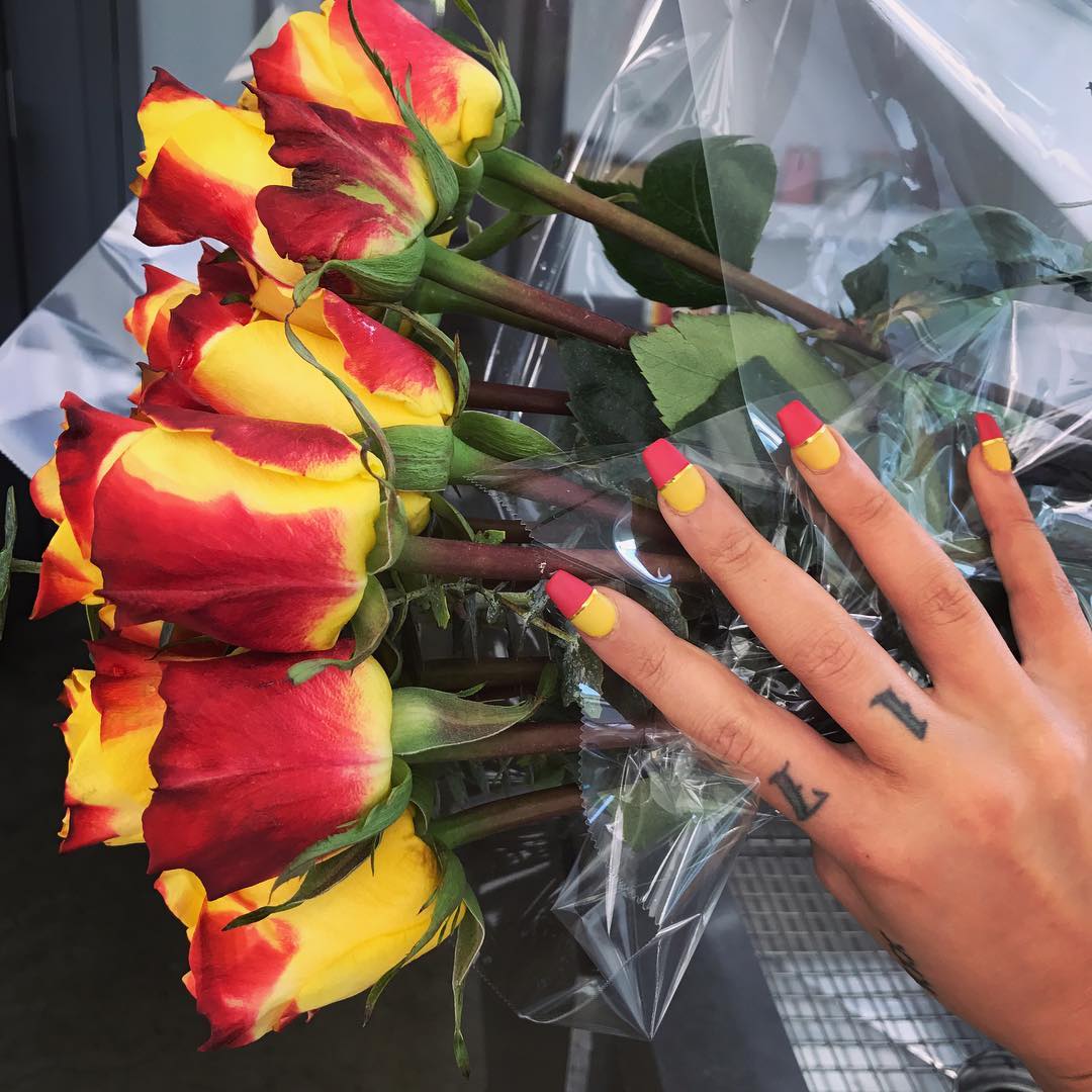 アメリカの人気シンガーであるおしゃれなホールジーは、ネイルをしたら一緒に撮るものがあった。