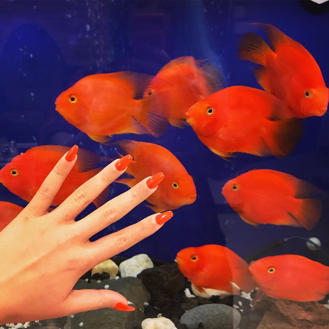 真っ赤なネイルのときは赤い魚、ラインが入ったものなら自身が着用しているボトムスのラインなど、ネタ元と思われる写真と一緒にアップしている。