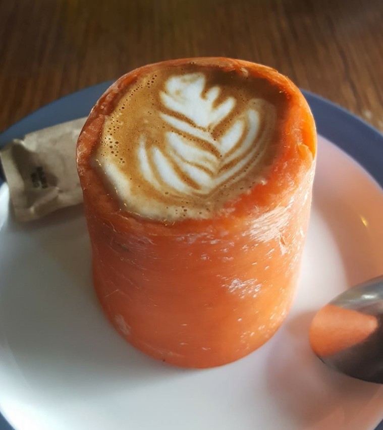 オーストラリアのカフェが、人参の中身をくり抜いて作った「人参ラテ」をアップして話題に。