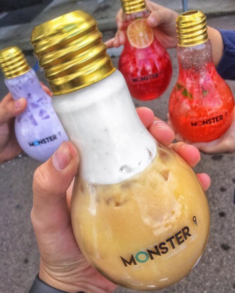 電球に見立てた容器に、ラテやフレッシュジュースなどが入っている「電球ドリンク」や、スムージーやシェイクの上をお菓子で花壇に見立てたドリンクなど、遊び心満載な商品に「オーマイガー」「やばすぎ」「なにこれ食べたい!」と大反響を呼んでいる。