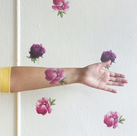 体に害のないインクを使用しているので、肌に優しいだけでなく子供の肌にも安心してつけることができる。この繊細なイラストは、フランス出身の水彩画家であるヴィンセント・ジャネローによるもので、10種類以上の花や植物のタトゥーシールをデザインしている。