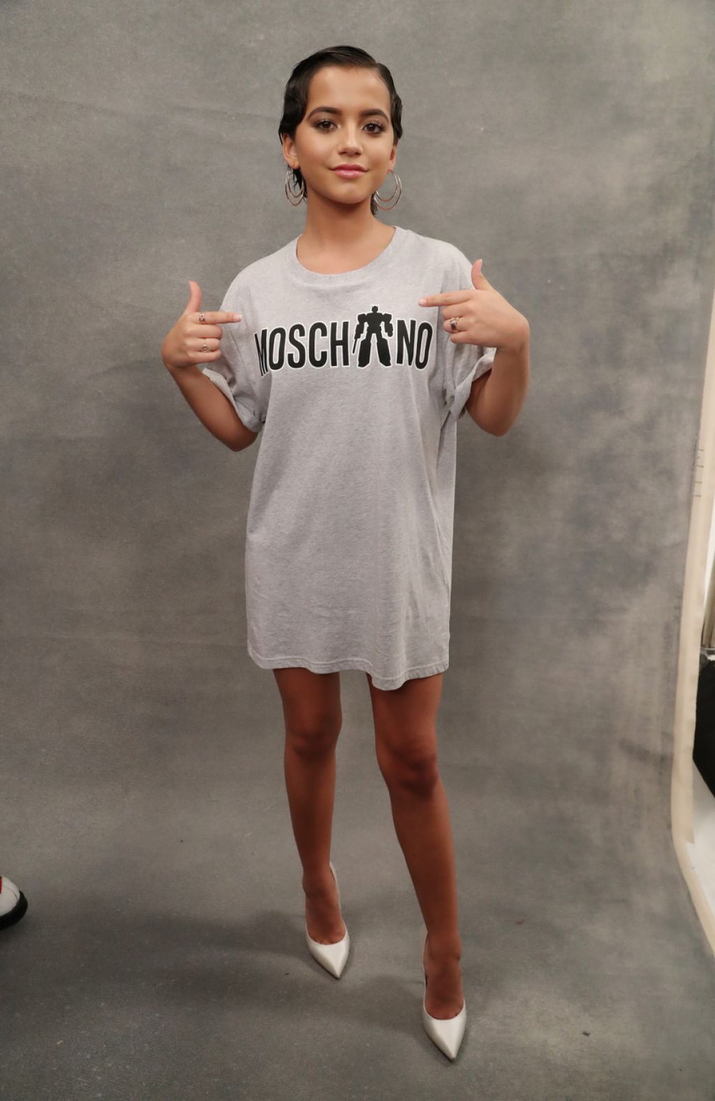 ファッション 2017.06.0915歳女優イザベラ・モナー、ファッション界でも注目 BY FRONTROW Editorial Dept.人気ドラマ『100 オトナになったらできないこと』のヒロインを演じる、ティーンに人気の女優イザベラ・モナー。今、ファッション業界でも注目を浴びているイザベラの最新ファッションをチェック。 モスキーノのコレクションに向かったイザベラは、同ブランドのビッグTシャツをあえて1枚でさらりと着用してワンピース風にスタイリング。 ヒップにまとめたヘアスタイルに、大きめのループピアスがフレッシュな印象。仕上げはパールホワイトのパンプスで大人っぽくまとめて。