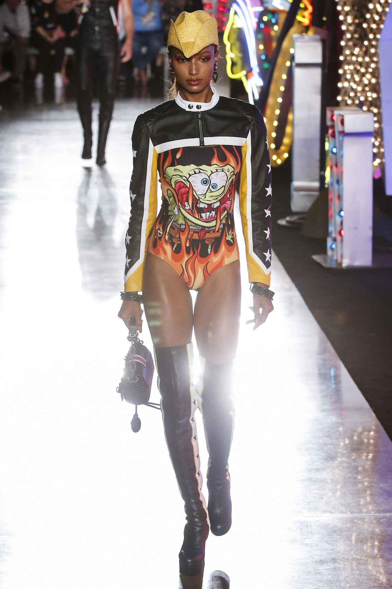 遊び心あふれるデザインが特徴のモスキーノらしく、ポップなアイテムが目白押ししだった今回のコレクションは、LAからラスベガスへのロードトリップをイメージしたもの。