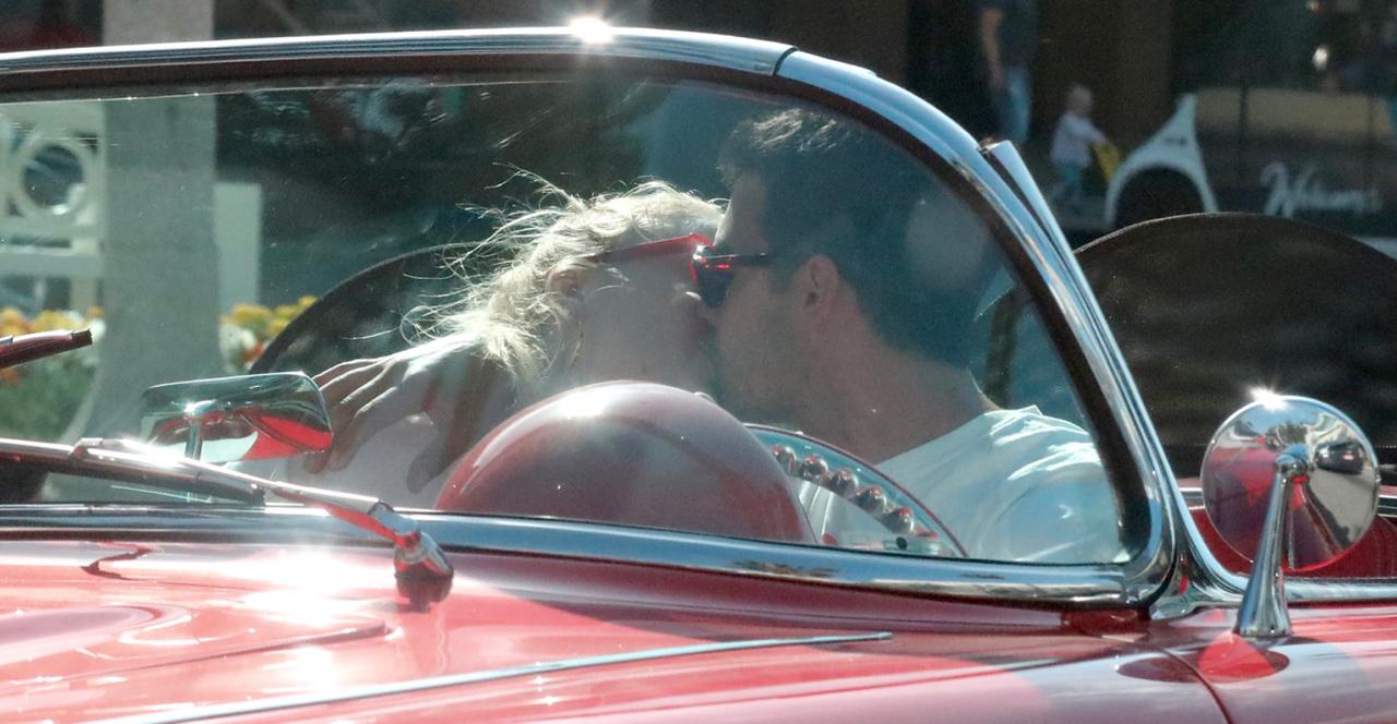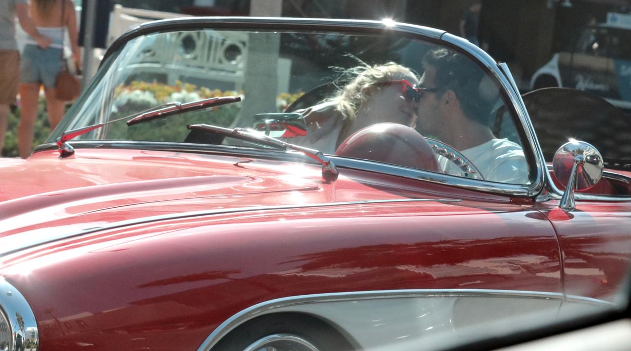 オープンカーだが、車の中は2人の世界。赤信号で停車すると、ジョーはソフィアの肩を抱き寄せキス。