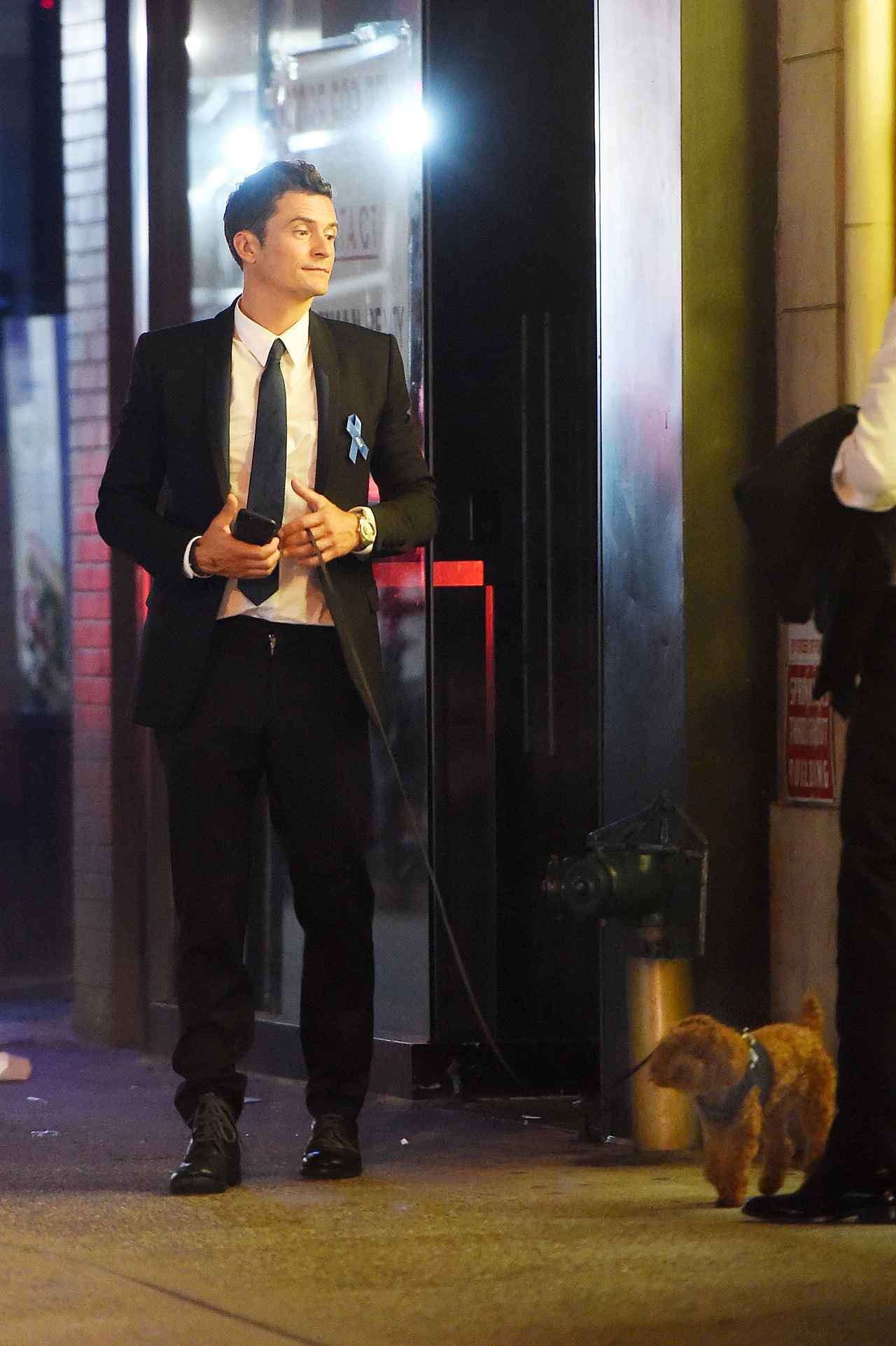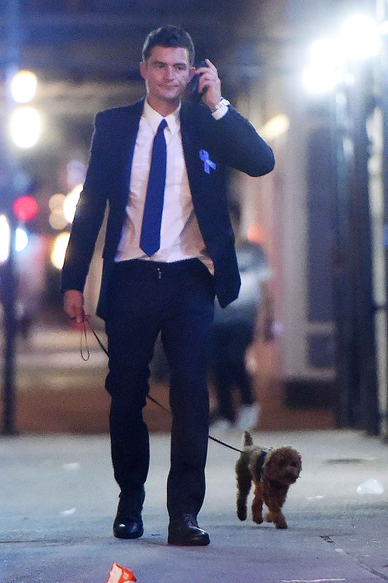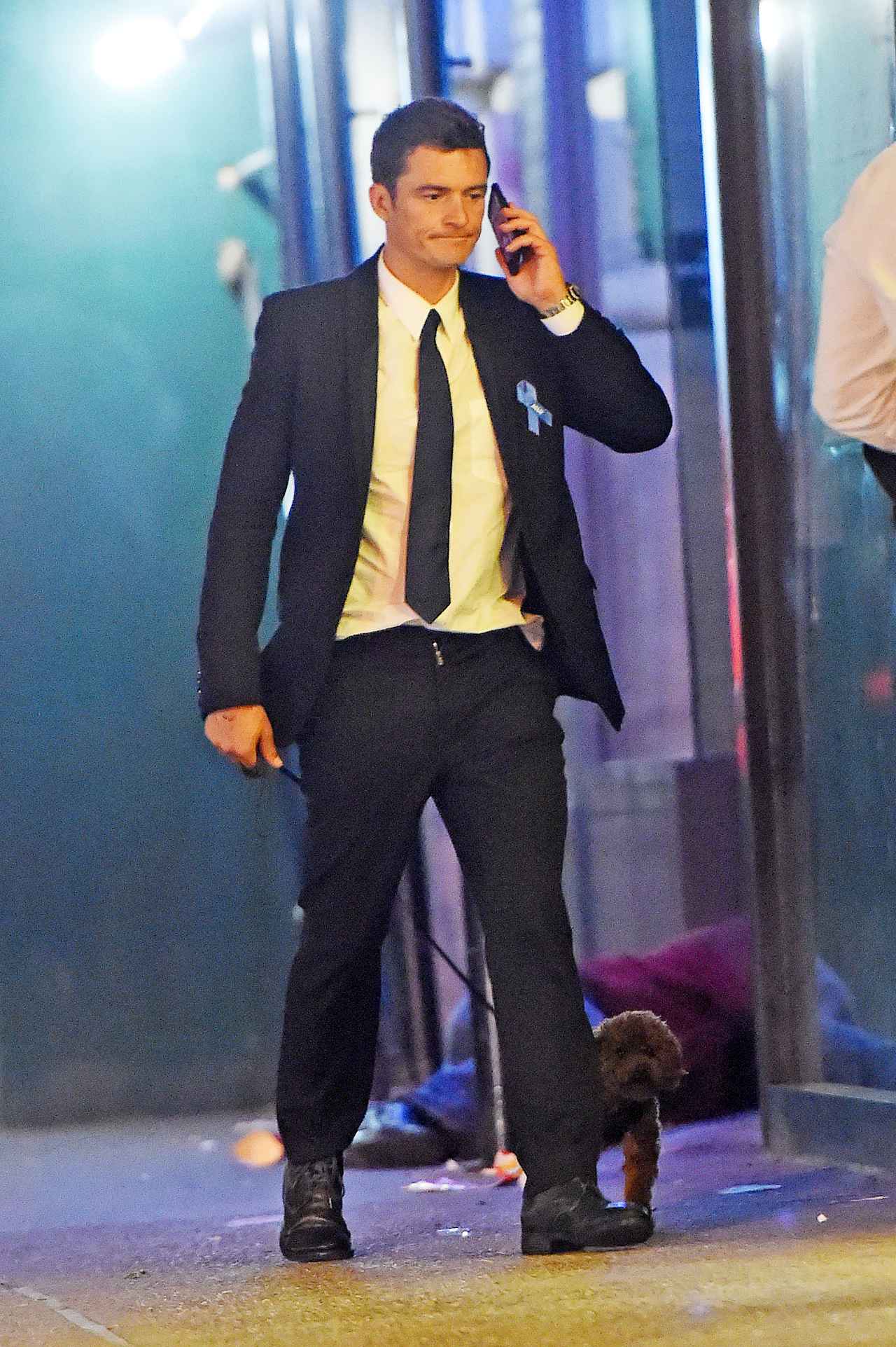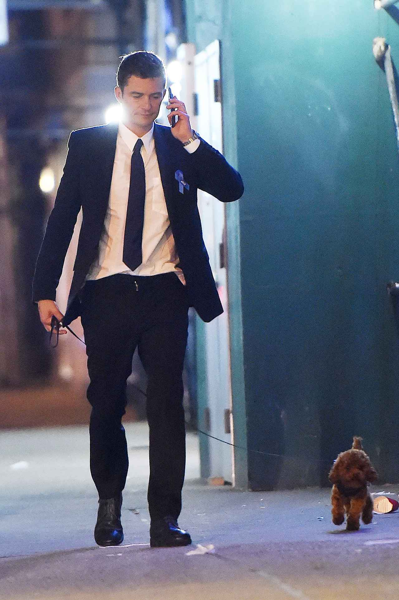 人気俳優オーランド・ブルームが、クールなスーツ姿で愛犬を散歩している様子を発見した。